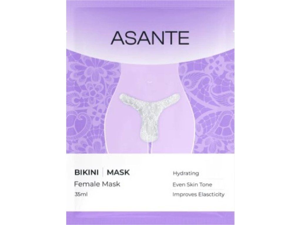 Textilná intímna telová maska Bikini od značky Asante bola navrhnutá na Slovensku. Pleťová maska z textilného materiálu je určená na jednorazové použitie. Pomáha udržať v pokožke vlhkosť a zanechať ju jemnú a sviežu. Vďaka špeciálnemu zloženiu pomáha pokožku zvlhčiť, zjemniť a vyrovnať jej tón. Masku možno aplikovať po sprche na suchú pokožku, každý deň, alebo párkrát za týždeň. Textilné masky značky Asante zanechajú pokožku hebkú a sviežu.