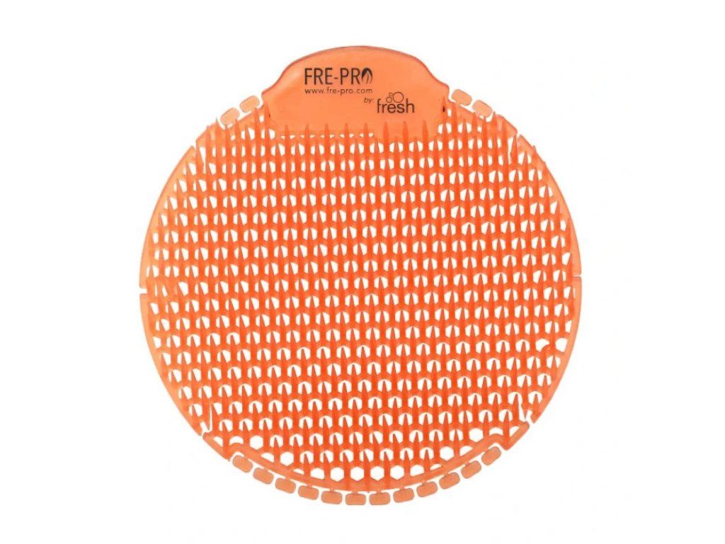 FRE-PRO Slant - vonné sitko do pisoára Mango 1ksFRE-PRO Slant je nové obojstranné vonné sitko na prevoňanie pisoárov s vôňou manga. Prináša nový patentovaný dizajn so šikmými bodcami pre 99,9% ochranu pred rozstrekovaním tekutín.