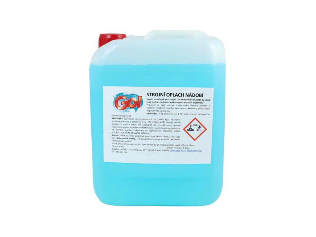 GO! strojové oplachovanie riadu 5LKyslý prostriedok pre strojové OPLACHOVANIE RIADU do všetkých typov umývačiek s možnosťou aplikácie oplachovacích prostriedkov.