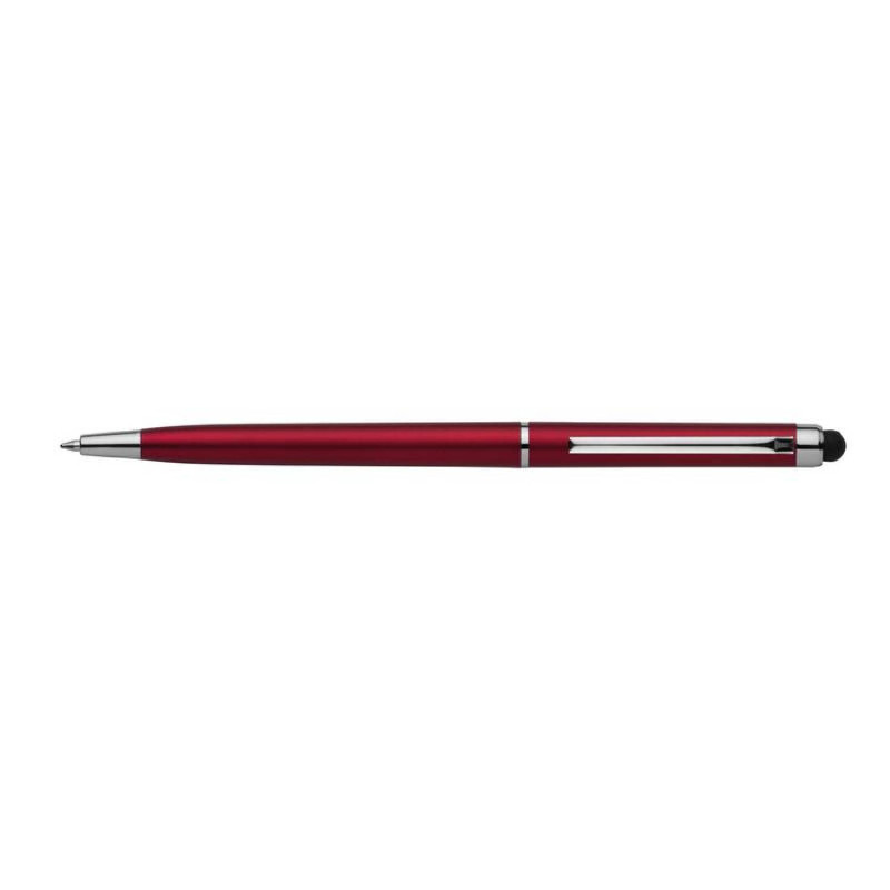 Plastové guľôčkové pero so stylusom červené, modrá náplň.