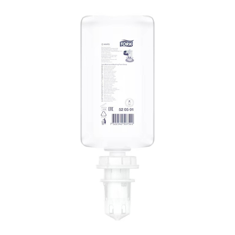Tork jemné penové mydlo poskytuje starostlivosť pre normálnu a suchú pokožku. Má príjemnú vôňu, obsahuje vyživujúce a obnovujúce prísady a vytvára jemnú a krémovú penu, ktorá šetrne čistí ruky. Náplň je určená pre Tork zásobníky na penové mydlá S4, ktoré sa vyznačujú jednoduchou a hygienickou výmenou.