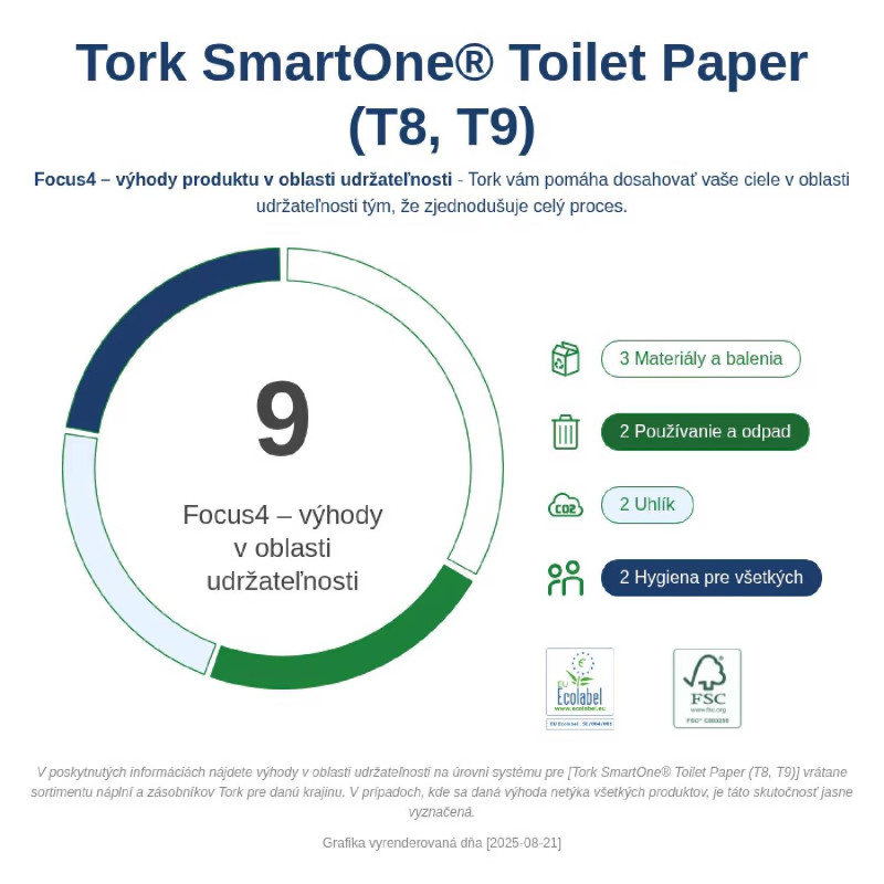 - Dávkovanie po útržkoch pomáha znižovať spotrebu až o 40 % v porovnaní s tradičnými zásobníkmi na jumbo toaletný papier