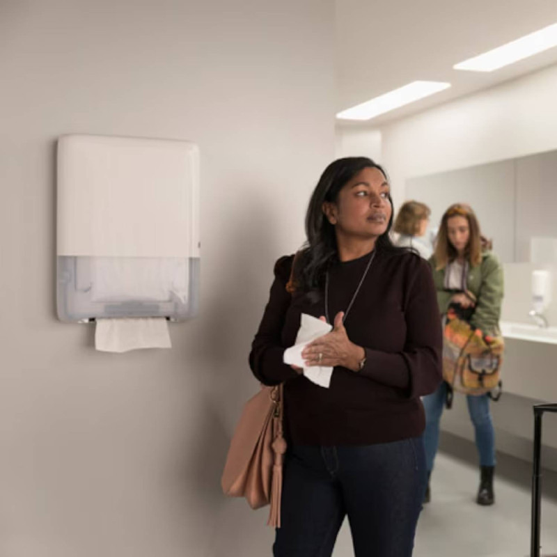 Tork PeakServere: najnovšia inovácia navrhnutá pre vysoko frekventované toalety a umyvárne, kde personál potrebuje maximalizovať čas upratovania a udržať dobrú plynulosť pre návštevníkov. Systém je kompatibilný s Tork PeakServere nadväzujúcimi utierkami na ruky. Má vysokú kapacitu až 1 230 utierok, ktoré dokáže dávkovať rýchlo a plynulo bez prerušenia. Stlačené náplne sa rýchlo dopĺňajú a môžete ich kedykoľvek doplniť. Ľahko sa uskladňujú a prepravujú, vďaka čomu umožňujú personálu sústrediť sa na upratovanie a nie na dopĺňanie.