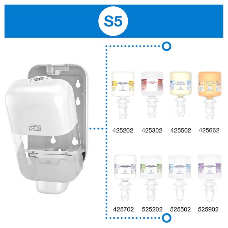 - Mnoho hygienických potrieb splnených vďaka 1 systému – široký výber náplní mydiel a dezinfekčných prostriedkov v penovej, tekutej alebo gélovej forme, ktoré sú vhodné pre vaše podnikanie a potreby používateľov