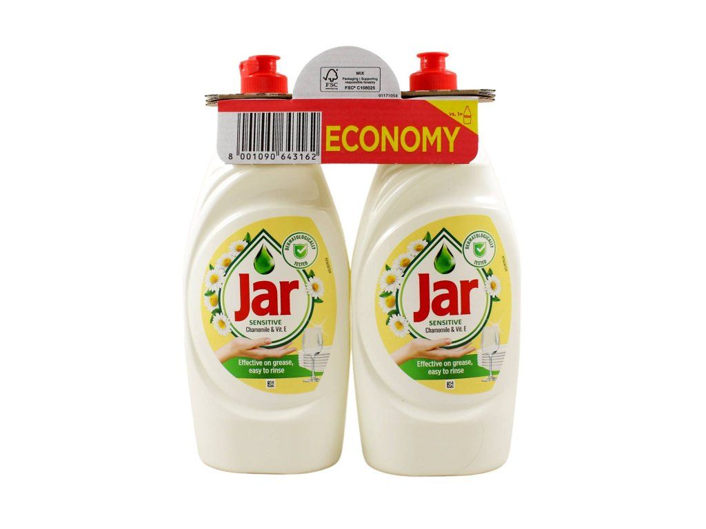 Jar SENSITIVE Chamomile&Vit.E 2x900mlVysoko koncentrovaný prípravok na riad JAR SENSITIVE Chamomile&Vit.E je až 2x hustejší ako ostatné prostriedky na riad, takže každá jeho kvapka dlho vydrží a umyje veľké množstvo riadu. Dokonale odstraňuje mastnotu a nečistoty z riadu a zanecháva ho čistý a voňavý. Jeho husté zloženie obohatené o vitamín E a výťažky harmančeka je veľmi jemné a šetrné k pokožke rúk.