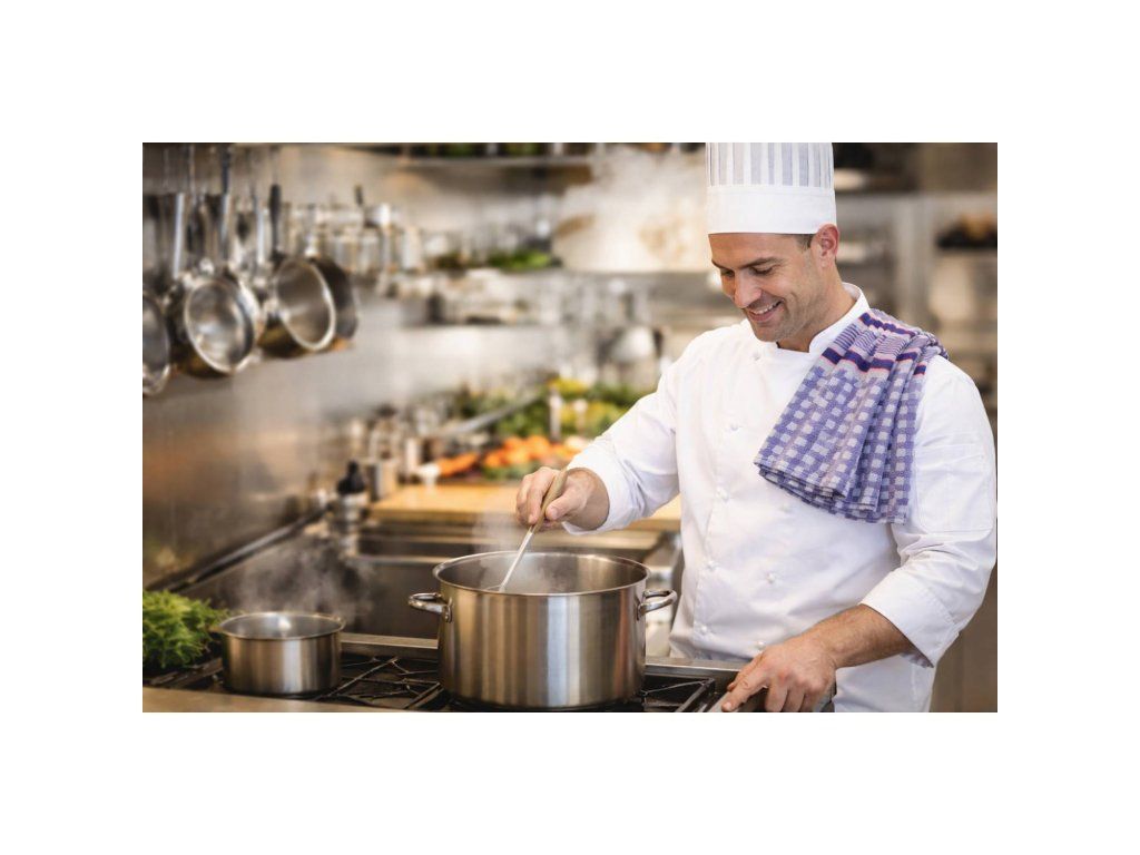 - Tradičný dizajn: Klasický modro-biely kockovaný vzor, ktorý je poznávacím znamením kvality v gastro priemysle.