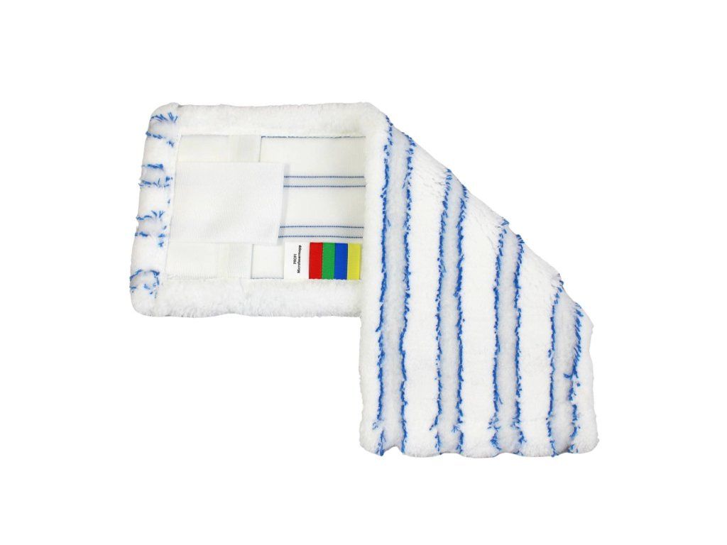 Profesionálny mikrovláknový mop DUO je navrhnutý pre maximálnu efektivitu a ľahkosť pri upratovaní. Mop slúži na fixové aj kapsové držiaky mopov. Ušká a kapsy sú vyrobené z POM materiálu, ktorý má vyššiu pevnosť a takmer nulovú nasiakavosť vody, čím sa zabráni znehodnoteniu úchytov a pretáčaniu mopu pri umývaní. Do kvalitného hustého mikrovlákna sú vložené abrazívne pruhy ktoré pomáhajú pri čistení. Mikrovláknové mopy nasajú menej tekutiny a preto čistia s menším množstvom čistiaceho roztoku, vďaka čomu sa nemusíme obávať, že by nám parkety alebo plávajúca podlaha navlhli. V procese výroby sa dbá na vysokú kvalitu, čo umožňuje až 450 praní pri teplote 90°C. Micro mop sa dá použiť aj na dosušovanie alebo leštenie podlahy. Mikrofázové vlákna najlepšie zachytávajú prach a špinu z podlahy. Mop má na spodnej časti farebné prúžky, ktorými sa dá rozlíšiť prostredie kde sa používajú, napr. nemocničné priestory.