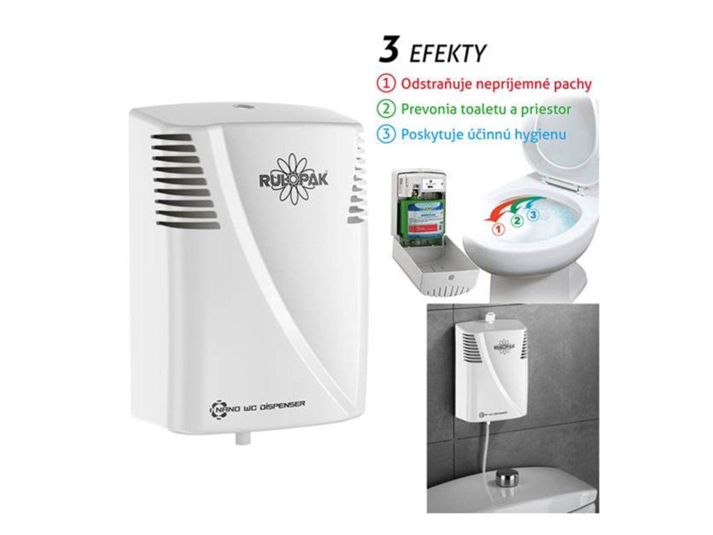 Zabezpečuje hygienu pri každom spláchnutí toaliet a svojou sviežou vôňou odbúrava nežiaduce čiastočky zápachu a v okolí vytvára príjemnú vôňu. Možnosť nastavenie času 7,5 / 15/30 minút. Potrebné 2 batérie AA.Nastavenie času 7-15, alebo 30 min, životnosť kazety 30 - 120 dní (závisí od použitia)