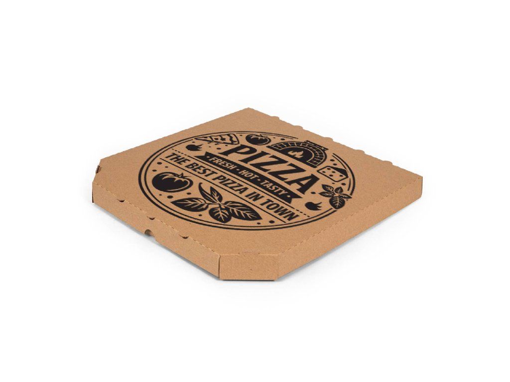 Kvalitná krabica na pizzu vyrobená z hnedej vlnitej lepenky. Originálny dizajn dodáva baleniu atraktívny vzhľad, ktorý upúta zákazníkov. Pizza krabice sú vďaka starostlivo vybranému materiálu, veľmi odolné teplote a spĺňajú všetky kritériá pre obaly určené na manipuláciu s potravinami. Spĺňajú všetky normy a certifikáty pre styk s potravinami, sú vybavené vetracími otvormi na odstránenie vlhkosti a dostatočne pevný materiál chráni pizzu pred poškodením a znečistením. Vhodné sú pre donáškové reštaurácie, pizzerie a fast foody. Krabica je stabilná, dobre drží tvar a spoľahlivo chráni pizzu počas prenášania aj rozvozu. Vďaka praktickému prevedeniu sa jednoducho skladá a používa.
