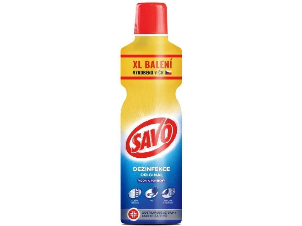 - Čistiaci prostriedok SAVO Original likviduje 99,9 % baktérií, vírusov, plesní, kvasiniek, rias a mikroskopických húb