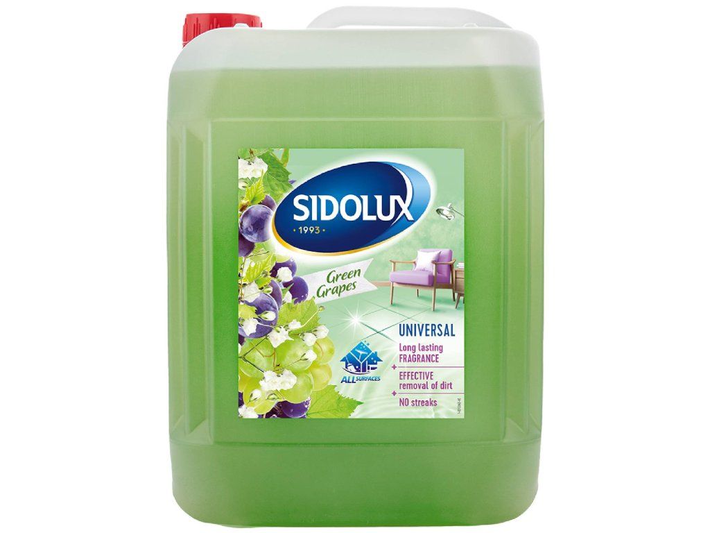 <p><b>SIDOLUX UNIVERSAL Green Grapes 5L</b></p>\r\n\r\n<p>Univerzálne čistiace prostriedky na všetky umývateľné povrchy. Jednoduchosť použitia a dokonalé čistiace schopnosti sú podčiarknuté príjemnou vôňou, ktorá vydrží v priestore ešte dlho po upratovaní.</p>\r\n\r\n<p>Vôňa Green Grapes je ľahká, svieža a jemne ovocná. Pripomína čerstvo odtrhnuté zelené hrozno - čisté, šťavnaté a prirodzene svieže. Prináša pocit vzdušnosti, čistoty a pohody bez ťažkých alebo sladkých tónov. Bude vás po celý rok hýčkať a dodávať vám vitalitu do každého dňa. Prostriedok nielen že nádherne vonia, ale tiež si bez problémov poradí s čistením rôznorodých povrchov! Tento univerzálny čistiaci prostriedok je určený na rýchle a efektívne odstraňovanie bežných nečistôt a mastnoty z umývateľných povrchov doma aj v kancelárii. Vhodný na podlahy, dlažbu, laminát, povrchy v kuchyni a kúpeľni, rovnako ako na ostatné umývateľné plochy, ktoré si prajete umyť a zároveň prevoňať.</p>\r\n\r\n<p>Sidolux univerzálny čistiaci prostriedok Green Grapes je ideálna voľba pre tých, ktorí majú radi jemné, čisté a moderné vône s nádychom ovocia. Vďaka unikátnemu systému Soda Power, ktorý je súčasťou prostriedku a ktorého pôsobenie zmäkčuje vodu, odstraňuje Sidolux univerzálny čistiaci prostriedok veľmi rýchlo nečistoty z povrchu. Sidolux univerzálny čistiaci prostriedok je Vaším spoľahlivým pomocníkom pri domácom upratovaní. Produkt sa skvele hodí na čistenie všetkých umývateľných povrchov.</p>\r\n\r\n<p><b>Vlastnosti:</b></p>\r\n\r\n<ul>\r\n <li>Univerzálne použitie na široké spektrum umývateľných povrchov</li>\r\n <li>Soda Power na zmäkčenie vody a účinné odmastenie</li>\r\n <li>Možnosť použitia ako riedený roztok na bežné čistenie aj ako koncentrát na silné znečistenie</li>\r\n <li>Svieža a jemne ovocná vôňa zeleného hrozna, ktorá prevonia domácnosť</li>\r\n <li>Objem 5 l – ekonomické balenie </li>\r\n</ul>\r\n\r\n<p><b>Použitie:</b></p>\r\n\r\n<ul>\r\n <li>Na každodenné upratovanie používajte slabšie riedenie, pri mastných škvrnách zvýšte koncentráciu</li>\r\n <li>Teplá voda zintenzívni čistiaci účinok, najmä pri údržbe podláh</li>\r\n <li>Pre dlhodobé prevoňanie urobte vytieranie večer – vôňa sa bude šíriť cez noc</li>\r\n</ul>\r\n\r\n<p>Na bežné vytieranie a utieranie povrchov pripravte riedený roztok podľa dávkovania. Na silné nečistoty aplikujte neriedený alebo menej riedený koncentrát a krátko zotrite. Produkt je ideálny do teplej alebo horúcej vody – Soda Power sa pri vyššej teplote aktivuje a zlepšuje účinnosť proti mastnote.</p>\r\n\r\n<p>Dávkovanie: 1,5 uzáveru do 5 l vody (orientačne).</p>\r\n\r\n<p>Pri vytieraní s mopom odporúčame použiť teplú alebo horúcu vodu pre lepší účinok Soda Power.</p>\r\n\r\n<p>Pre silné znečistenie použite vyššiu koncentráciu a krátko zotrite vlhkou handrou alebo mopom.</p>\r\n\r\n<p>Sidolux Universal Green Grapes spája praktickosť univerzálneho čističa s príjemným vonným zážitkom. Pokiaľ hľadáte prostriedok, ktorý nielen čistí, ale aj prevonia domácnosť a zároveň zvládne mastnotu, vďaka Soda Power je táto voľba vhodná práve pre vás.</p>\r\n\r\n<p>Cena je za bal./5L</p>\r\nDodatočné parametre