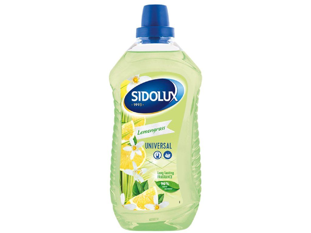 <p><b>SIDOLUX UNIVERSAL Lemongrass 1L</b></p>\r\n\r\n<p>Univerzálne čistiace prostriedky na všetky umývateľné povrchy. Jednoduchosť použitia a dokonalé čistiace schopnosti sú podčiarknuté príjemnou vôňou, ktorá vydrží v priestore ešte dlho po upratovaní.</p>\r\n\r\n<p>Svieži závan citrónovej trávy prináša do vášho domova pocit čistoty, ľahkosti s citrusovým nádychom, ktorý zostáva príjemne cítiť ešte dlho po upratovaní. Stačí používať Sidolux univerzálny čistiaci prostriedok s vôňou lemongrass. Prostriedok nielen že nádherne vonia, ale tiež si bez problémov poradí s čistením rôznorodých povrchov! Tento univerzálny čistiaci prostriedok je určený na rýchle a efektívne odstraňovanie bežných nečistôt a mastnoty z umývateľných povrchov doma aj v kancelárii. Vhodný na podlahy, dlažbu, laminát, povrchy v kuchyni a kúpeľni, rovnako ako na ostatné umývateľné plochy, ktoré si prajete umyť a zároveň prevoňať.</p>\r\n\r\n<p>Sidolux univerzálny čistiaci prostriedok s vôňou citrónovej trávy prináša do domácnosti pocit čistoty, sviežosti a ľahkej citrusovo – bylinnej energie, ktorá osvieži priestor ešte dlho po upratovaní. Vďaka unikátnemu systému Soda Power, ktorý je súčasťou prostriedku a ktorého pôsobenie zmäkčuje vodu, odstraňuje Sidolux univerzálny čistiaci prostriedok veľmi rýchlo nečistoty z povrchu. Sidolux univerzálny čistiaci prostriedok je Vaším spoľahlivým pomocníkom pri domácom upratovaní. Produkt sa skvele hodí na čistenie všetkých umývateľných povrchov.</p>\r\n\r\n<p><b>Vlastnosti:</b></p>\r\n\r\n<ul>\r\n <li>Univerzálne použitie na široké spektrum umývateľných povrchov</li>\r\n <li>Soda Power na zmäkčenie vody a účinné odmastenie</li>\r\n <li>Možnosť použitia ako riedený roztok na bežné čistenie aj ako koncentrát na silné znečistenie</li>\r\n <li>Elegantná vôňa lemongrass, ktorá prevonia domácnosť</li>\r\n <li>Objem 1 l – praktické balenie pre bežné domácnosti</li>\r\n</ul>\r\n\r\n<p><b>Použitie:</b></p>\r\n\r\n<ul>\r\n <li>Na každodenné upratovanie používajte slabšie riedenie, pri mastných škvrnách zvýšte koncentráciu</li>\r\n <li>Teplá voda zintenzívni čistiaci účinok, najmä pri údržbe podláh</li>\r\n <li>Pre dlhodobé prevoňanie urobte vytieranie večer – vôňa sa bude šíriť cez noc</li>\r\n</ul>\r\n\r\n<p>Na bežné vytieranie a utieranie povrchov pripravte riedený roztok podľa dávkovania. Na silné nečistoty aplikujte neriedený alebo menej riedený koncentrát a krátko zotrite. Produkt je ideálny do teplej alebo horúcej vody – Soda Power sa pri vyššej teplote aktivuje a zlepšuje účinnosť proti mastnote.</p>\r\n\r\n<p>Dávkovanie: 1,5 uzáveru do 5 l vody (orientačne).</p>\r\n\r\n<p>Pri vytieraní s mopom odporúčame použiť teplú alebo horúcu vodu pre lepší účinok Soda Power.</p>\r\n\r\n<p>Pre silné znečistenie použite vyššiu koncentráciu a krátko zotrite vlhkou handrou alebo mopom.</p>\r\n\r\n<p>Sidolux Lemongrass spája praktickosť univerzálneho čističa s príjemným vonným zážitkom. Pokiaľ hľadáte prostriedok, ktorý nielen čistí, ale aj prevonia domácnosť niekoľkými dňami, a zároveň zvládne mastnotu vďaka Soda Power, je táto voľba vhodná práve pre vás.</p>\r\n\r\n<p>Cena je za bal./1L</p>\r\nDodatočné parametre