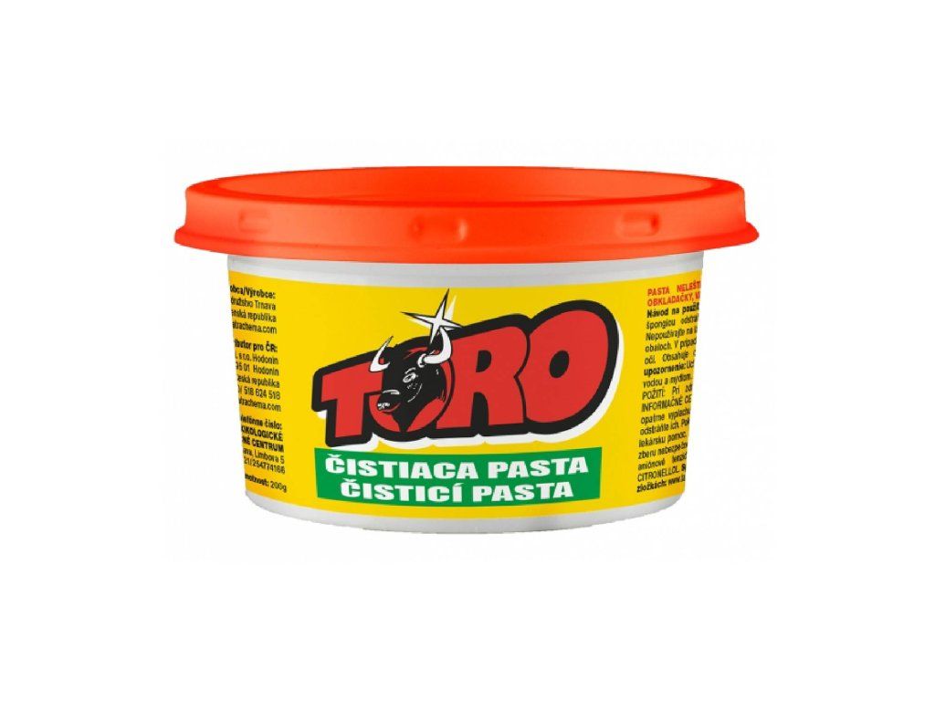 TORO čistiaca pasta 200gAbrazívna čistiaca pasta na mechanické odstraňovanie pripálenín, nečistôt, mastnoty z kuchynského náradia, vhodná aj na čistenie vaní, umývadiel a sociálnych zariadení.