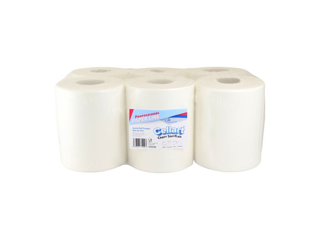 123270 – Utierka CELLART Craft Soft Flex, 270m (6ks)Papierové utierky Soft Flex sú veľmi kvalitné a extra jemné. Utierky sú vyrobené zo 100 % celulózy, na dotyk veľmi príjemné a veľmi dobre savé.