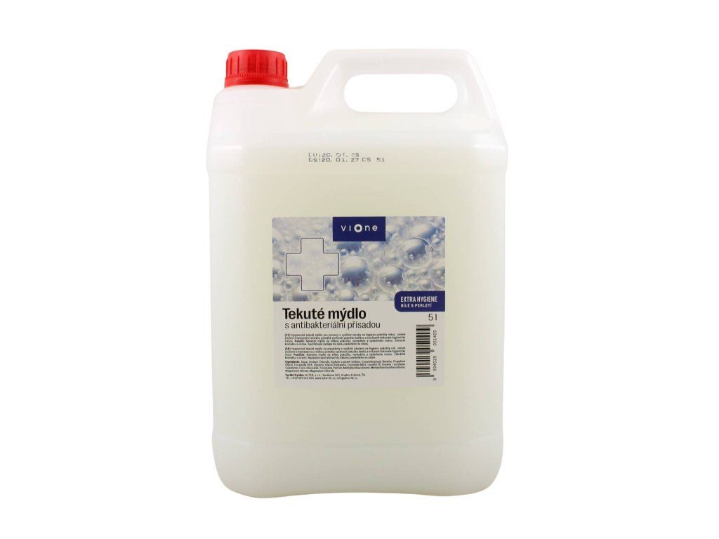 Vione hygienické mydlo EXTRA HYGIENE 5L pre prevádzky s vyššími nárokmi na hygienu pokožky rúk.VIONE extra hygiene mydlo biele s perleťou s obsahom antibakteriálnej prísady triclosan.